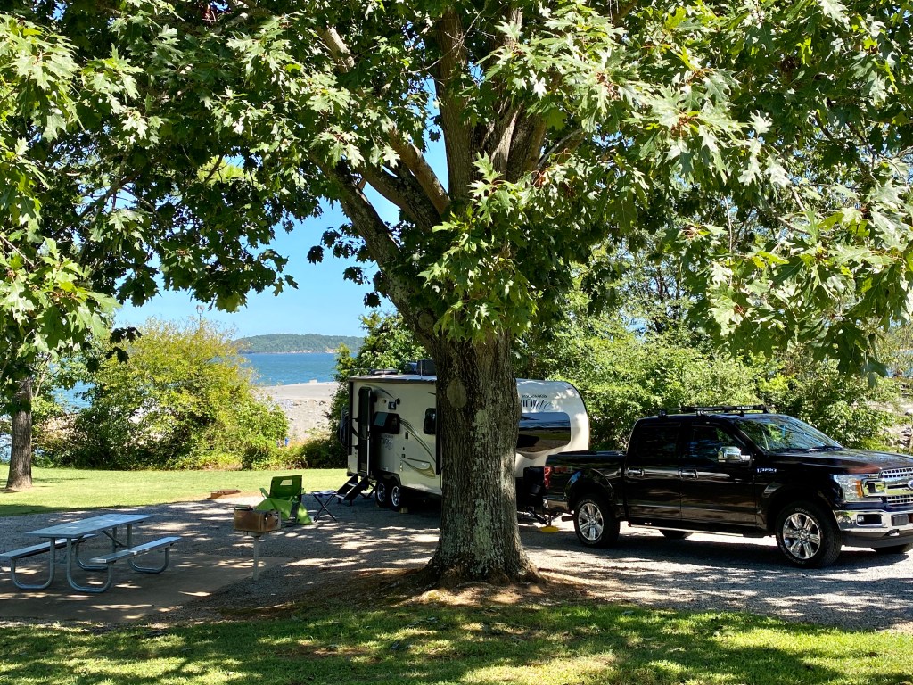 Arrived at the campground, inquired about any waterside site cancellations, should I be inclined to move, and I was rewarded by the fact that there WAS indeed a cancellation on a LEVEL site just 25 feet from the water and within a phenomenal view of the boat launch, which, if you’re a boat person, you will acknowledge is the highest form of entertainment.